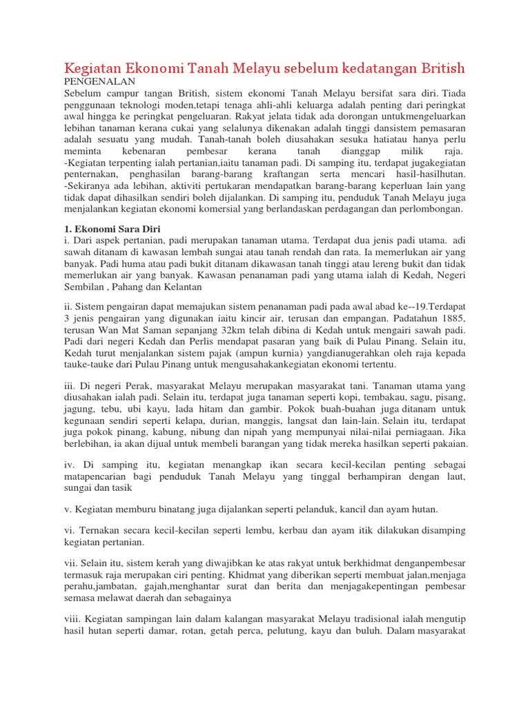 Kegiatan Ekonomi Tanah Melayu Sebelum Kedatangan British Pdf
